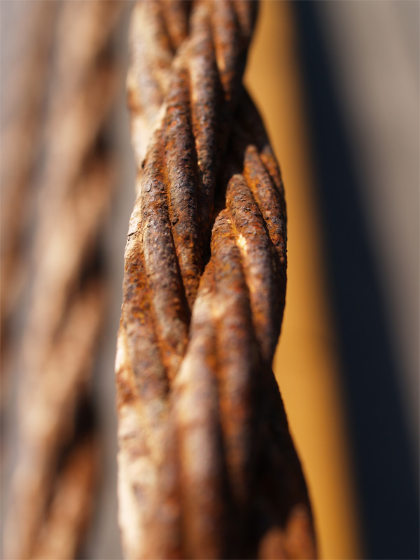 道路沿いのガードレール代わりの鉄線ロープ。錆びてます。海の近くだから仕方ないんですけどね。