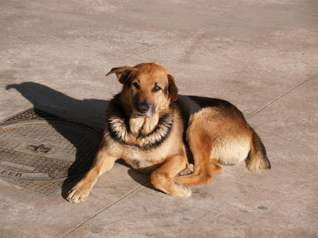 ドライブインに居たわんこ。他に2匹いまして、ガソスタでガソリン入れて去っていく車を追い掛け回してました。よくまぁ轢かれないもんで