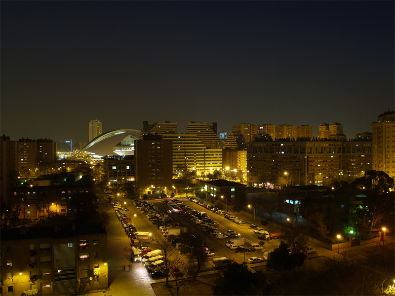 ホテルから撮ったバレンシアの夜景。近くにカルフールがあります。カルフールには道中大変お世話になりました