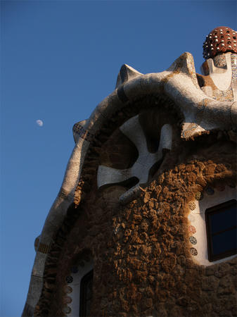 グエル公園のとある一軒の家、というかお土産屋さん。昼の月が見えてます