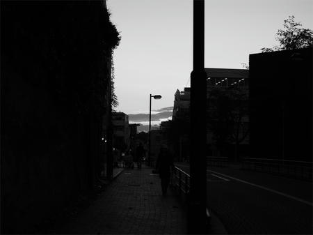 白黒でごまかし撮影。でも全然夕陽っぽくありません