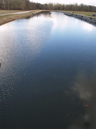 シャンボール城の側を流れる川、というか水路?水面の半分が凍ってます