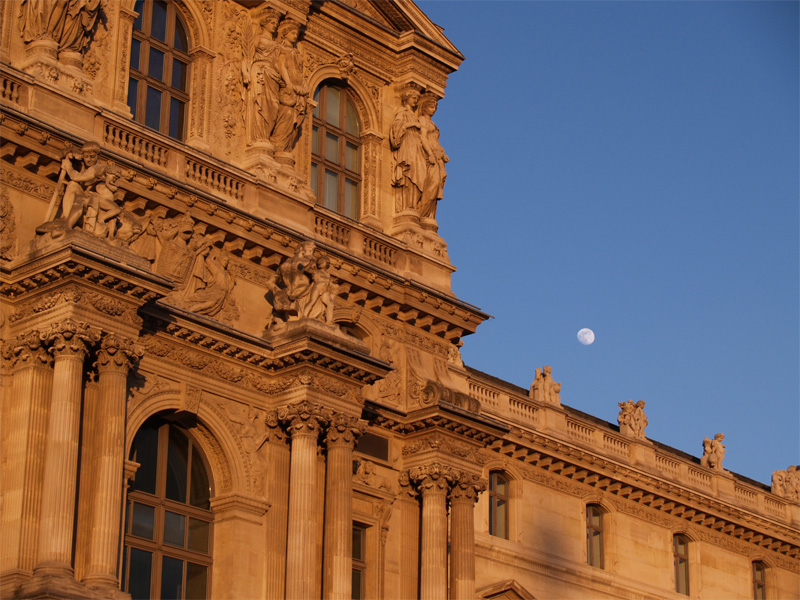 一個だけパリの写真。ルーブル美術館外観。昼の月、というか夕の月が見えてます