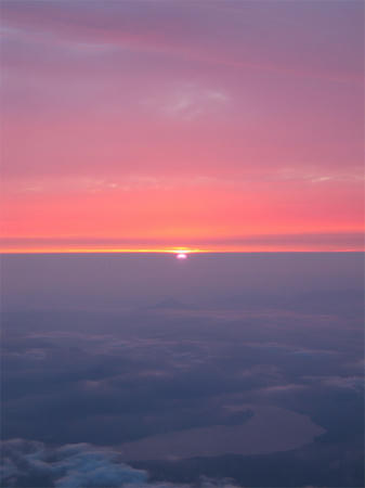 日の出。湖まで写る大パノラマ。そして鬼寒い。風強い。日がゆっくり昇っていく瞬間が見えます。徐々に世界が光に染められていく瞬間が拝めます。感動