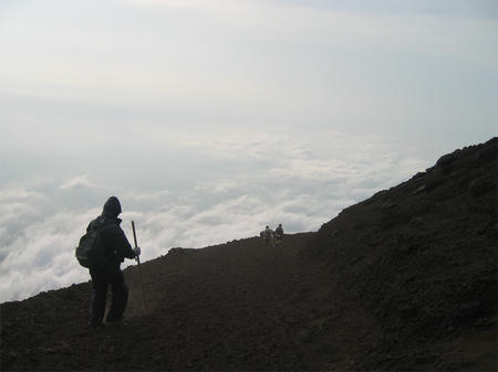 五合目辺りまでバスがくるので、それに乗って、そっから登山で、日の出を拝むために誕生日前日に昇って、八合目の江戸屋という山小屋で宿泊、そして明け方登って日の出前に山頂に、という感じ。そして日の出を拝んで、ラーメン食べて、下山、というプランでした。